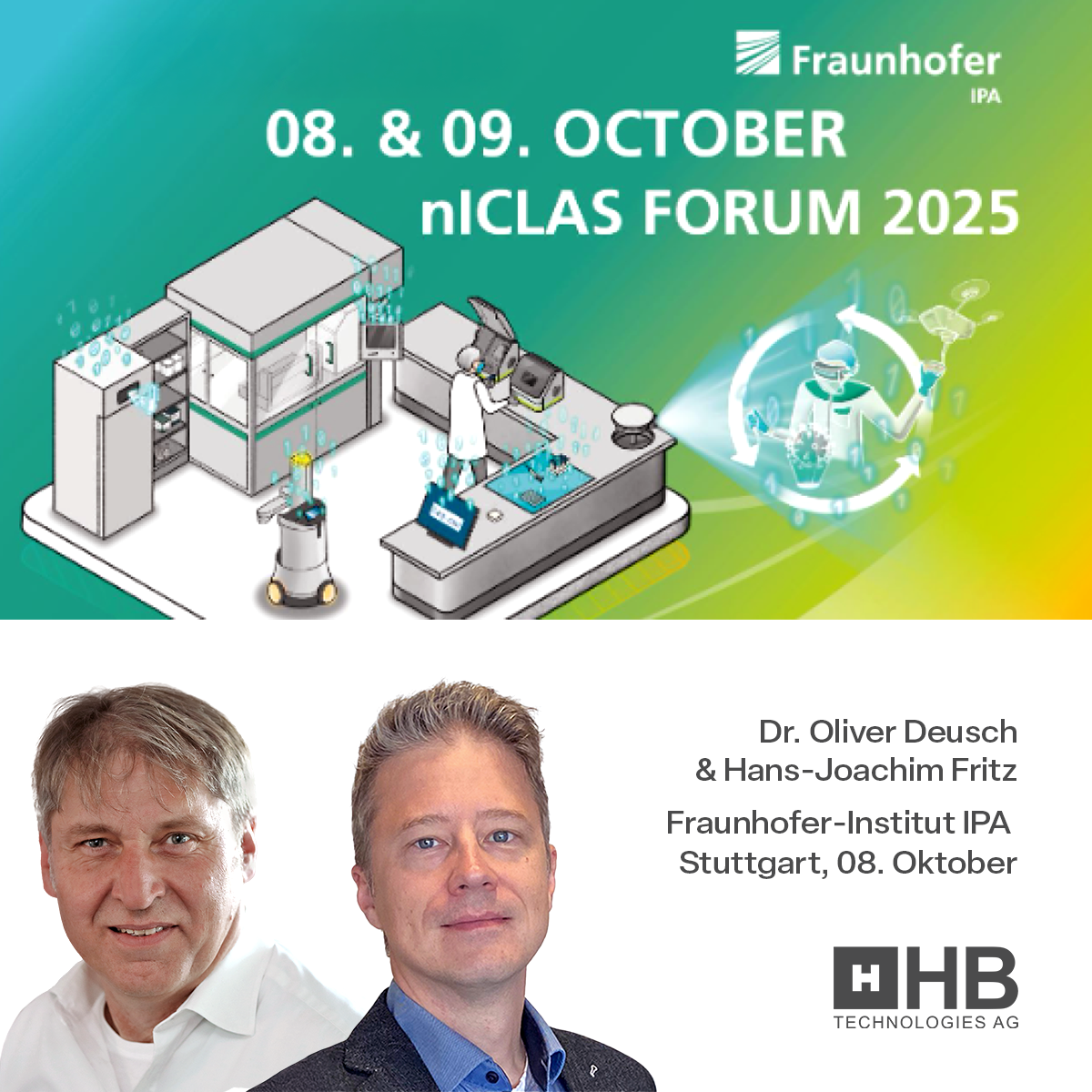 Treffen Sie Dr. Oliver Deusch und Hans-Joachim Fritz beim nICLAS Forum 2025 des Frauenhofer IPA in Stuttgart.