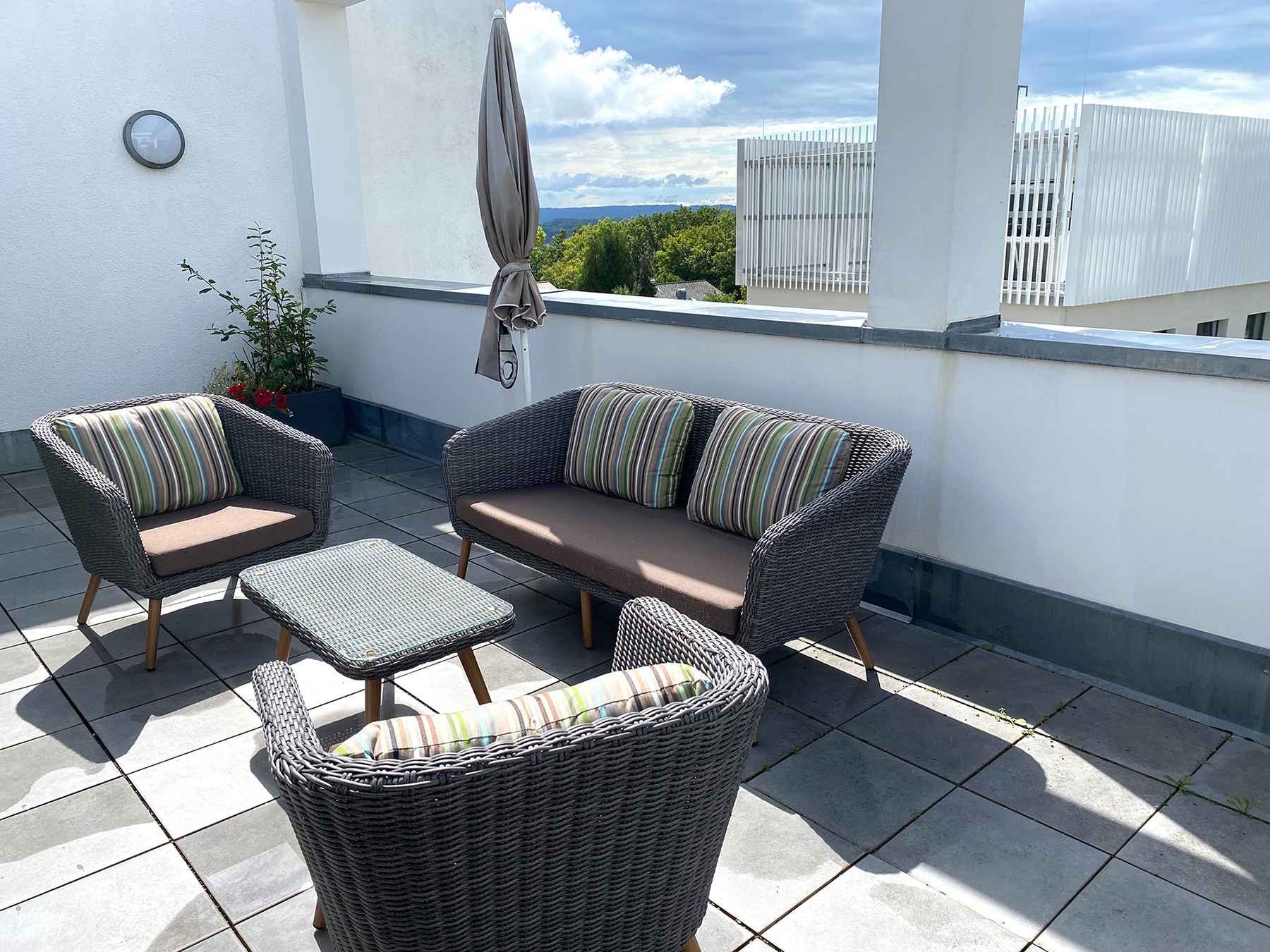 - 40 m² Dachterrasse. Mit Blick auf Tübingen und die Schwäbische Alb.