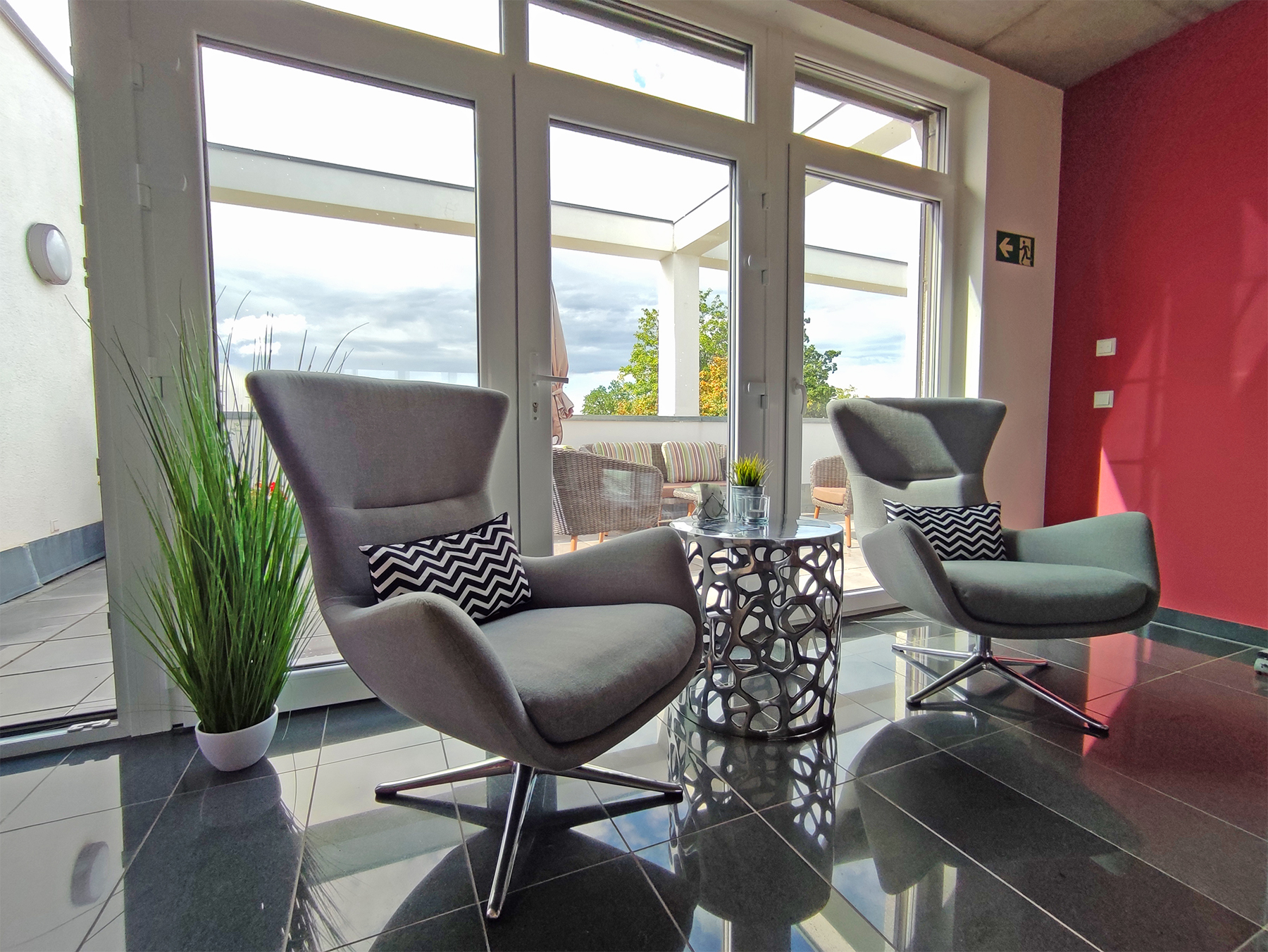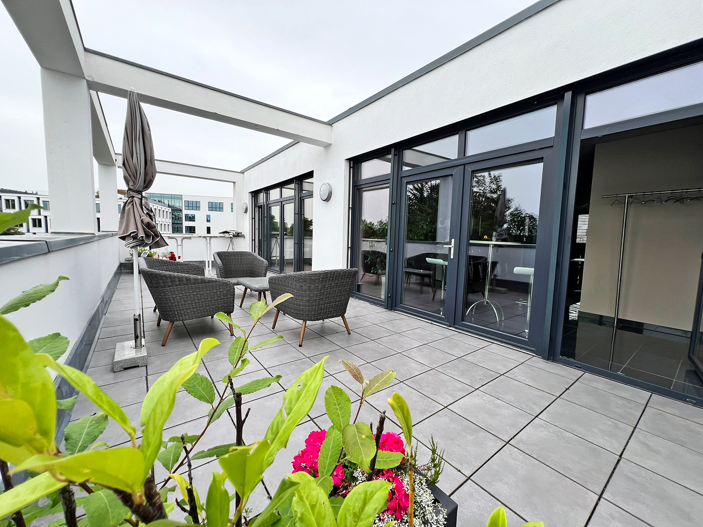 - Flexible Nutzung: Dachterrasse, Küche, Foyer und Eingangsbereich bieten ideale Möglichkeiten zur Gestaltung eines individuellen Rahmens, um inhaltliche Beiträge in einer optimalen Arbeitsumgebung behandeln zu können.